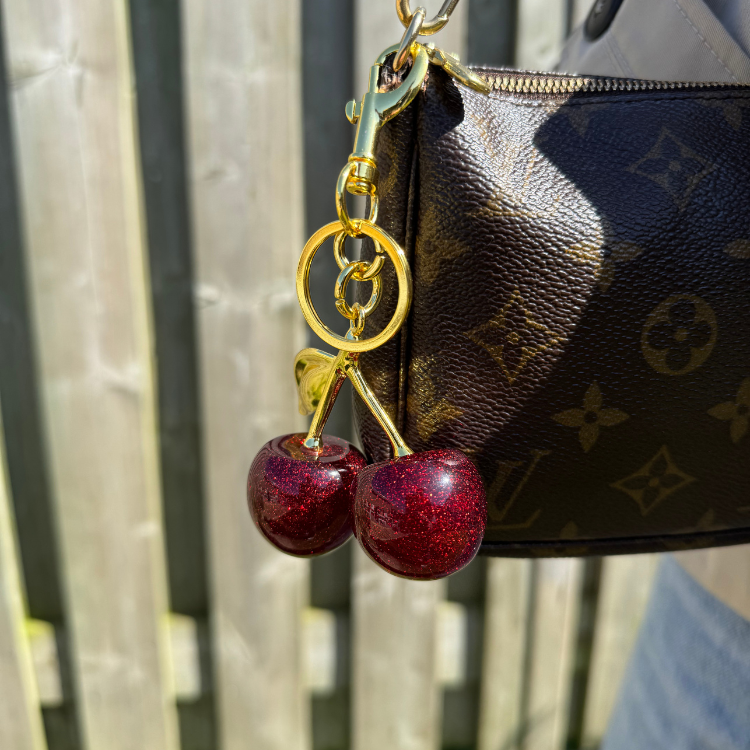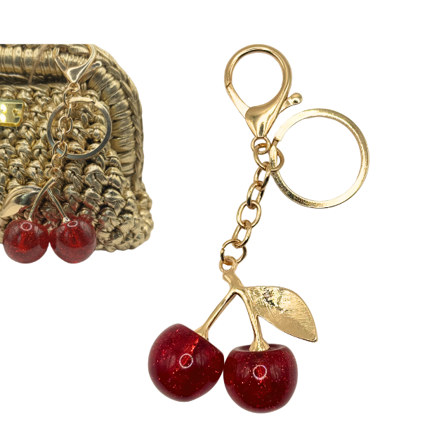 Deze sleutelhanger met kersen is zo’n accessoire dat je outfit net dat beetje extra geeft. Vrolijk, speels en makkelijk te combineren met je tas, sleutelbos of andere items.